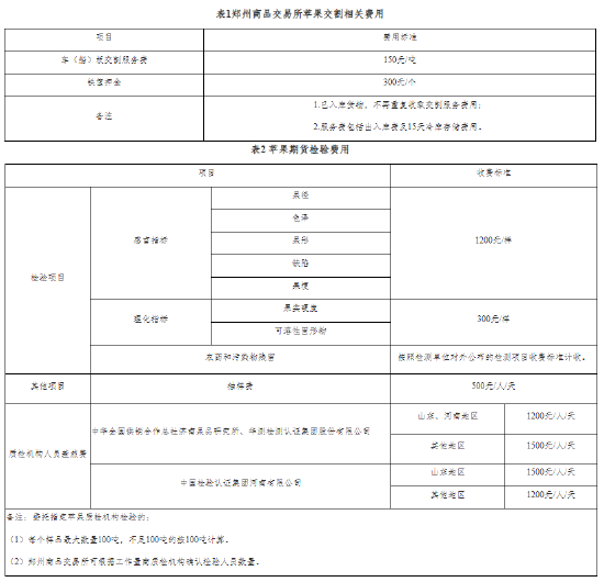 郑商所公告,自2025年9月17日起调整苹果期货车(船)板交割服务费、装果容器费用、苹果期货检验费用,具体标准如下。