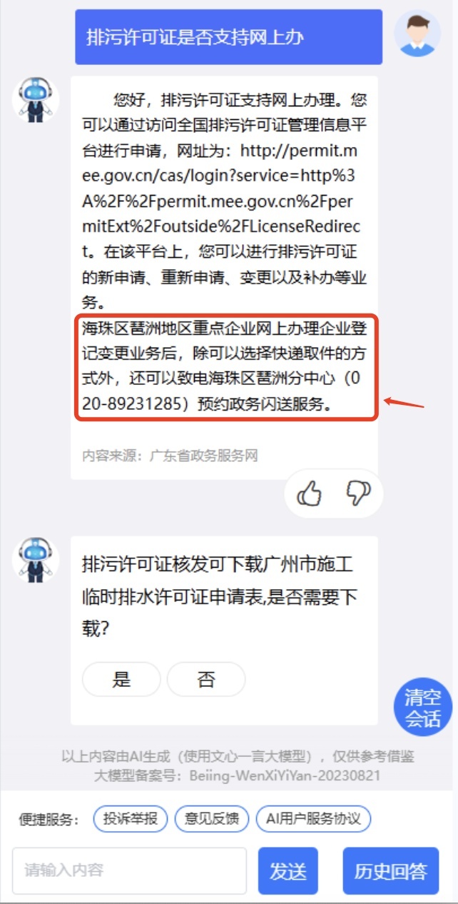 海珠区聚焦琶洲人工智能、数字经济等重点产业企业,构建了“智能导办—联合审批—专员送达”的“政务外卖”闪送机制:通过升级AI导办功能、优化跨部门协同审批流程、组建专属政务“闪送专员”队伍,实现企业线上“下单”,经“AI数字服务导办师”指导完成需求确认、材料提交与网上审批,如需纸质版证照或审批文书,无需跑窗口,可直接拨打琶洲政务服务专属“闪送预约热线”由“闪送专员”配送上门,办事“全程零跑腿”,像点外卖一样简单。